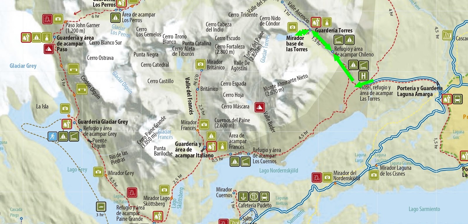 – 3 horas y 45 minutos al desvío al Campamento Las Torres.