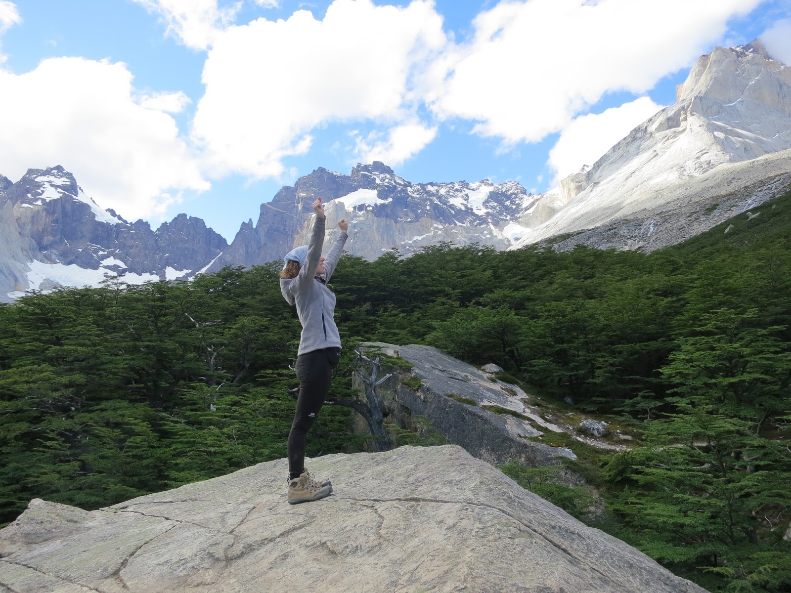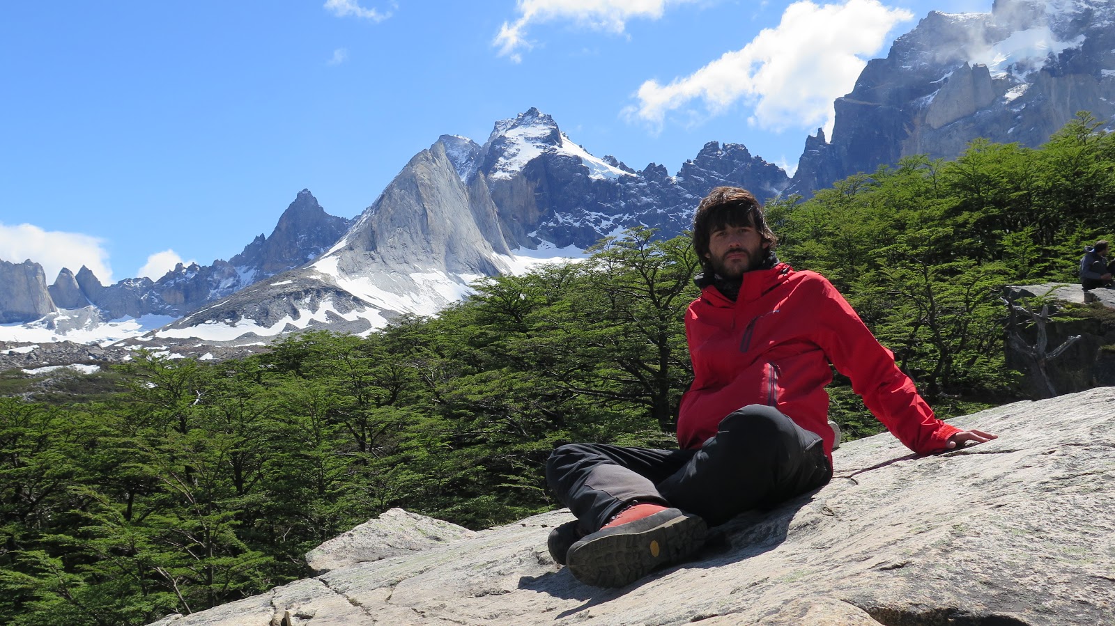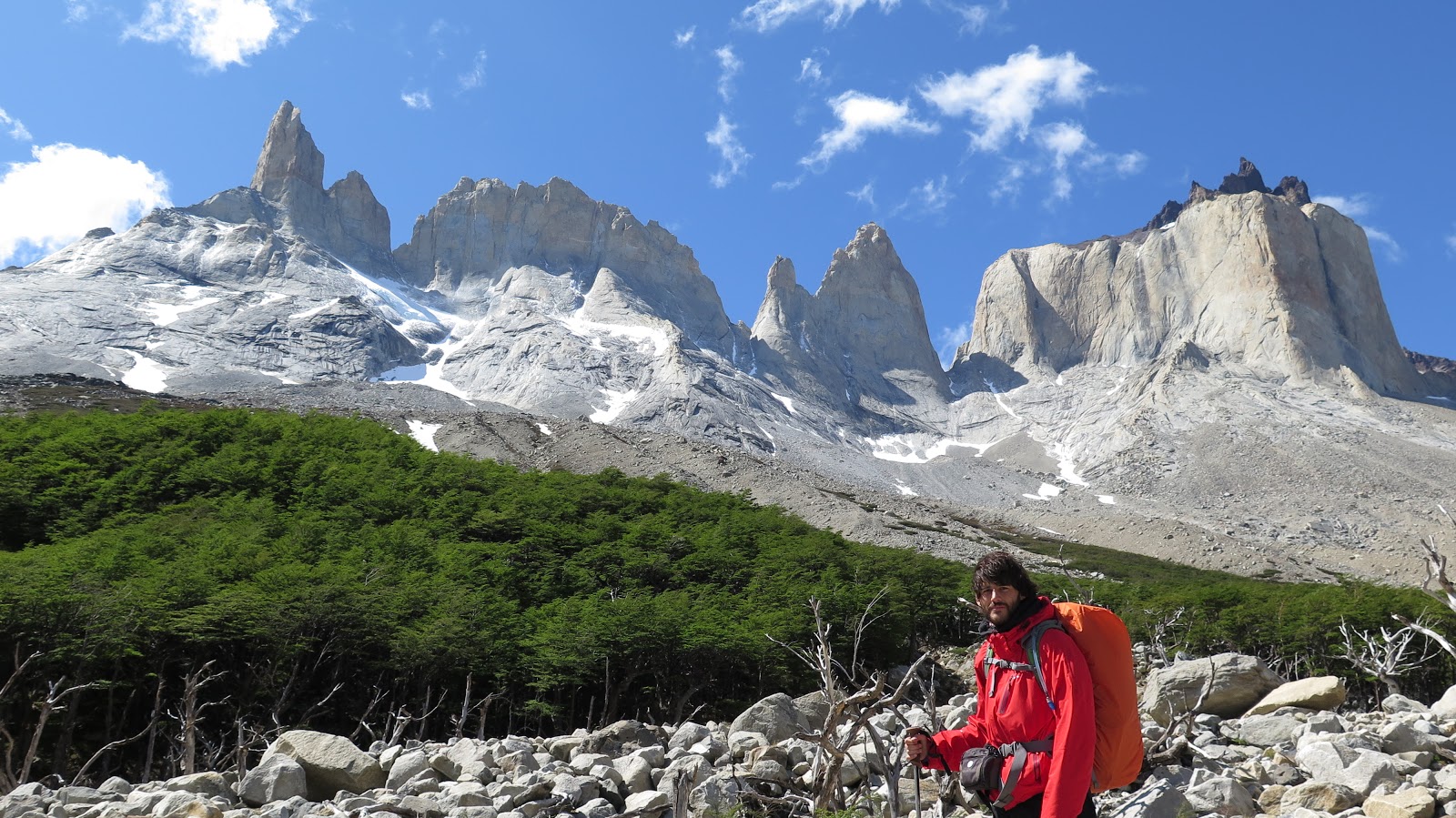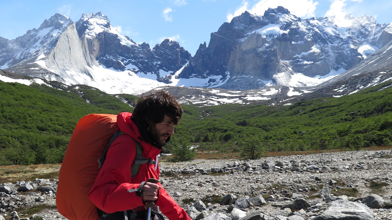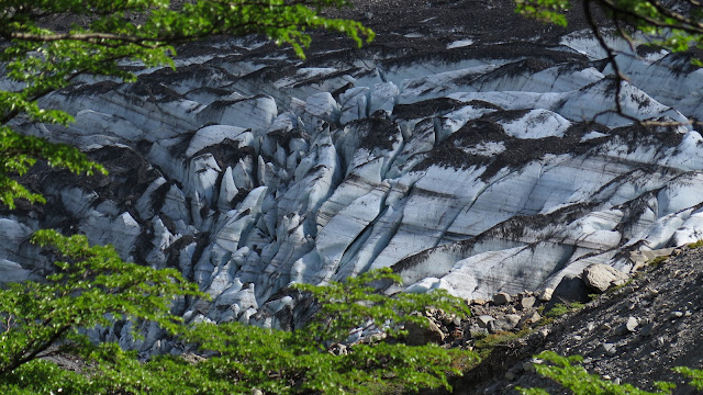 Con un extra de motivación debido al cambio de tiempo, además de las primeras montañas y glaciares que asoman en los claros de bosque, continuamos caminando.