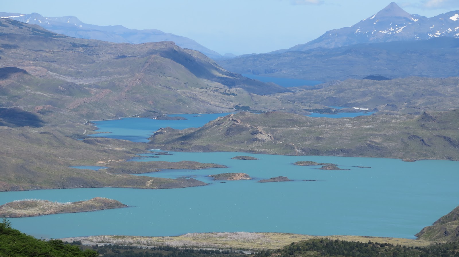 Vistazo hacia atrás, los lagos muestran sus tonalidades azules.