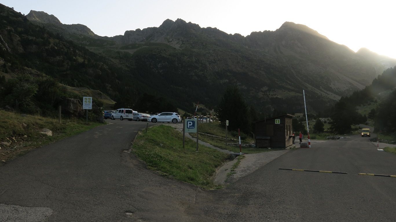 El punto de partida de la ruta es en los Llanos del Hospital, situados al fondo del Valle de Benasque. Tras superar la localidad, debemos conducir por la carretera que sigue rumbo norte para, unos metros antes de que esta acabe, tomar el desvío (bien indicado) a los Llanos del Hospital.