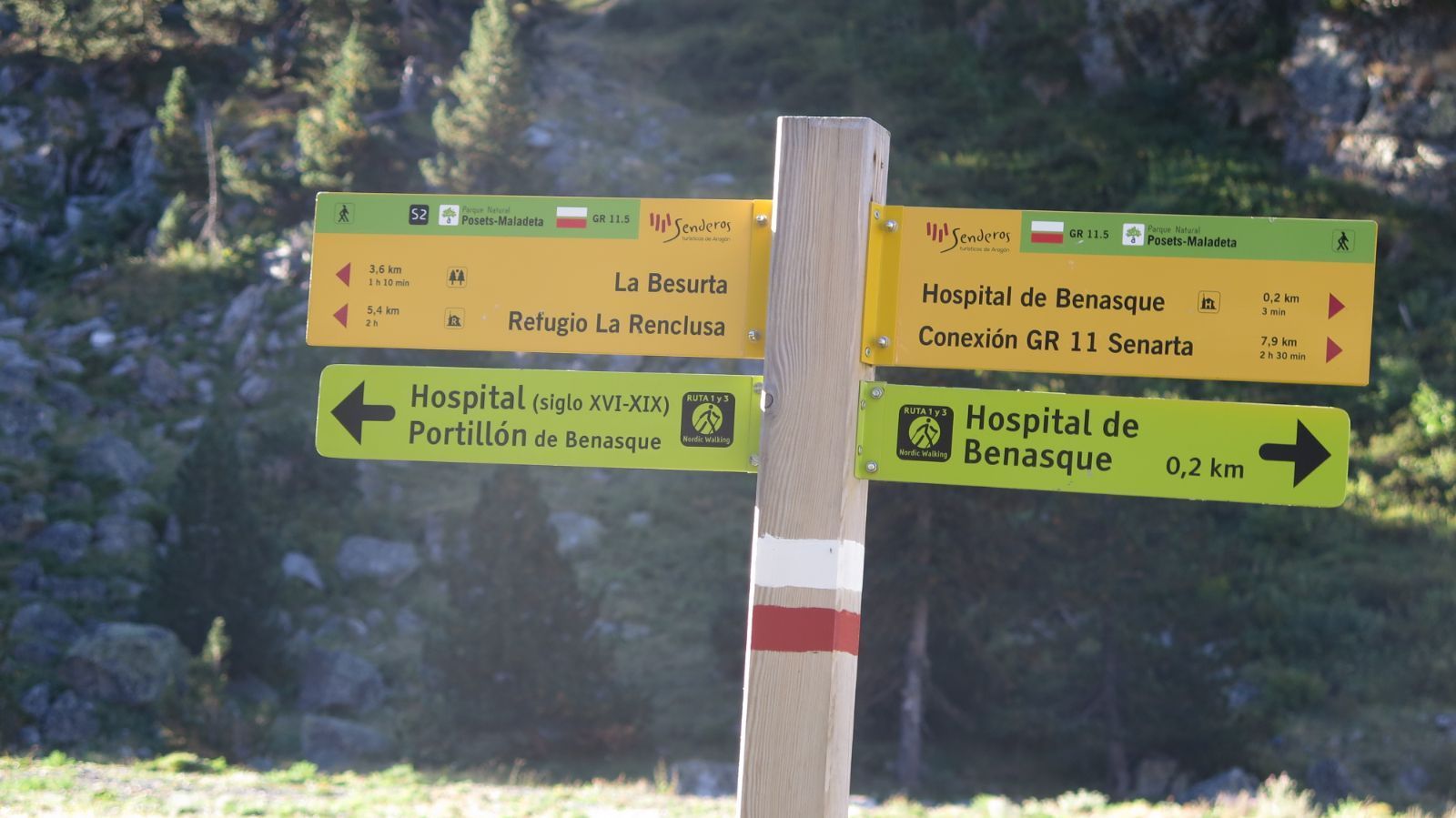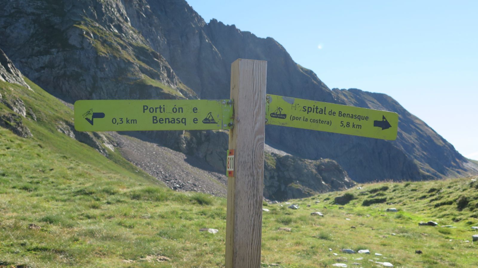 Pronto encontramos el primer cartel que nos confirma que vamos bien. Nosotros hacia el Portillón de Benás.
