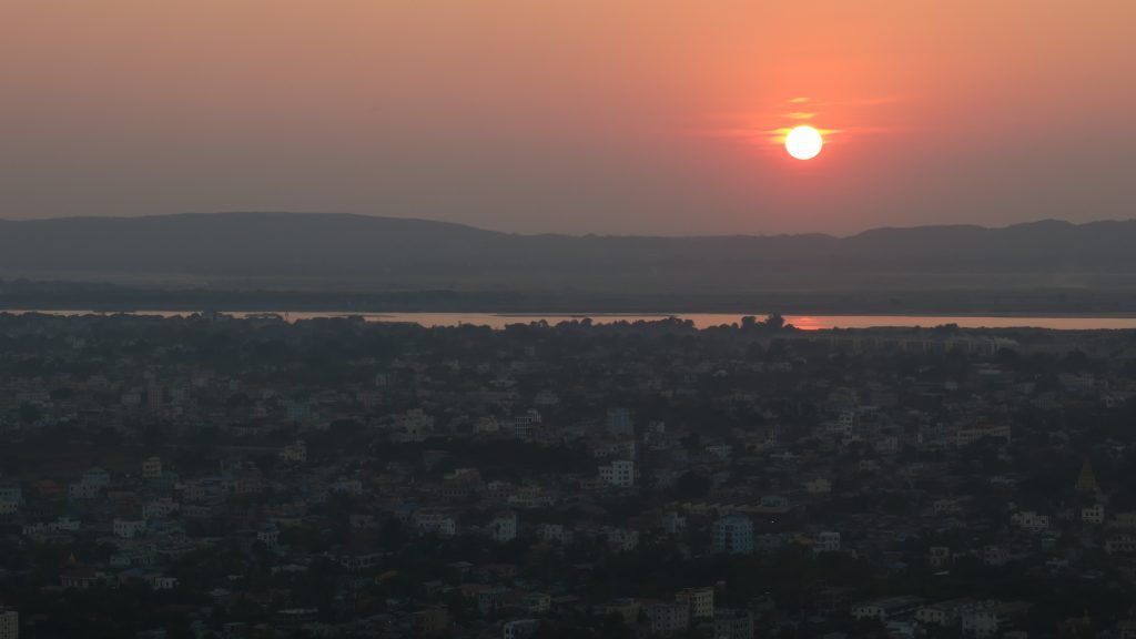 Nos unimos al gran grupo de visitantes para disfrutar del evento que, aunque se repita todos los días, no deja de fascinarnos: el atardecer. Y es que, ver atardecer desde Mandalay Hill, con el sol poniéndose sobre el Río Irawadi es una auténtica delicia.