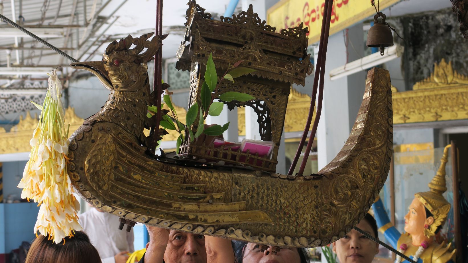 La pagoda, aunque es bastante bonita, tampoco nos llama demasiado la atención. Cabe destacar, sin embargo, el curioso barco “volador” en que los fieles depositan sus peticiones y agradecimientos, y que asciende por un cable a lo más alto de la pagoda.
