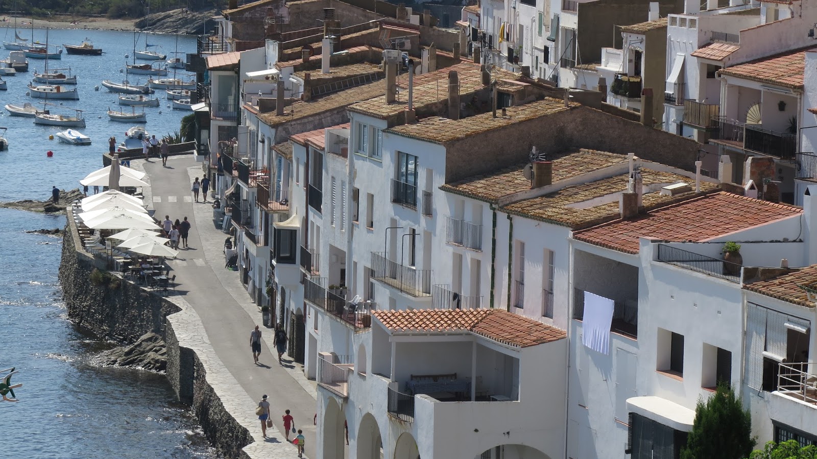 Tras el baño nos acercamos al pequeño restaurante “El gato azul”, situado en uno de los rincones más pintorescos de Cadaqués. Nos tocó una mesa que asomaba hacia la calle, preciosa. La comida, aunque no muy abundante, realmente buena.