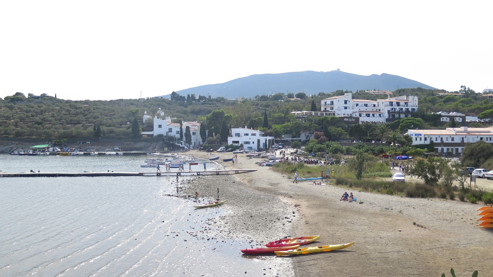 Caminamos entre casas de paredes blancas con puertas y ventanas azules, sin apenas gente. Resulta fácil imaginar a Dalí paseando por aquí, buscando inspiración para sus obras o simplemente disfrutando del paisaje. Podemos encontrar, junto a la playa principal, una estatua del pintor.