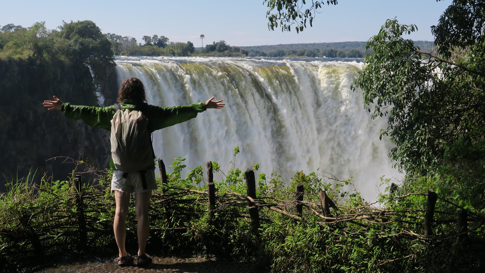 Por la mañana visitamos una de las maravillas naturales del mundo: las Cataratas Victoria. Por la tarde tomamos un ferry por el Río Zambeze, desde el cual vemos varios hipopótamos y disfrutamos de uno de los atardeceres más hermosos que hemos visto nunca.