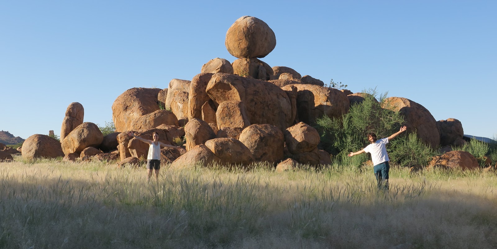 | Posando junto a los petroglifos, de miles de años de antigüedad. |