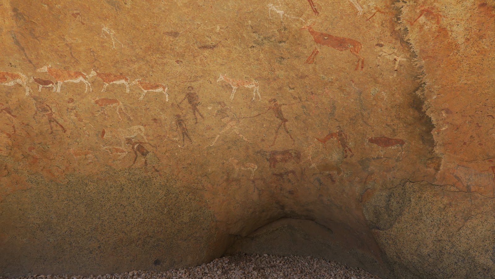 Escondidos entre las rocas, bajo las montañas más altas de Namibia, se encuentran unas pinturas rupestres de unos 2000 años de antigüedad.