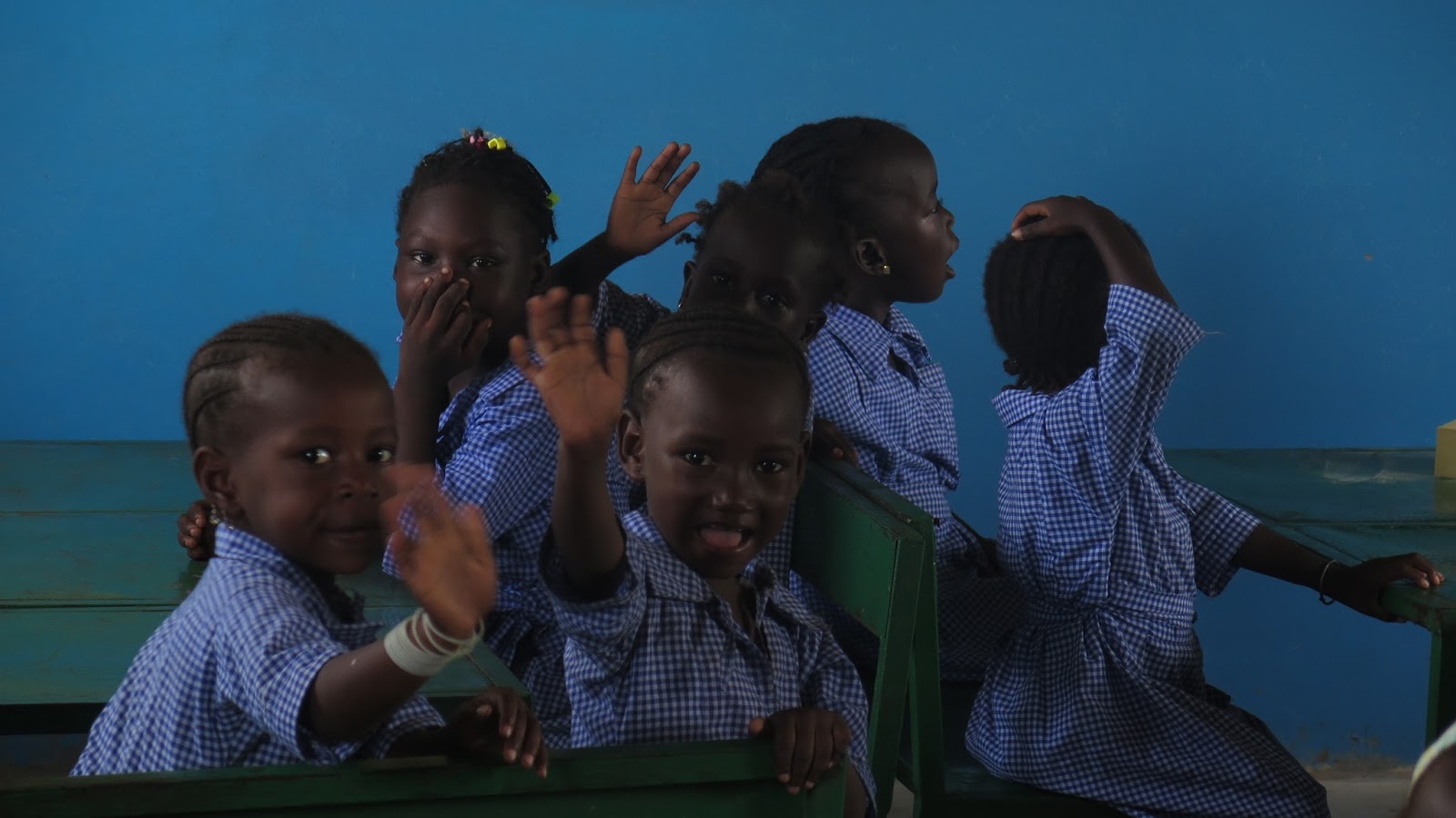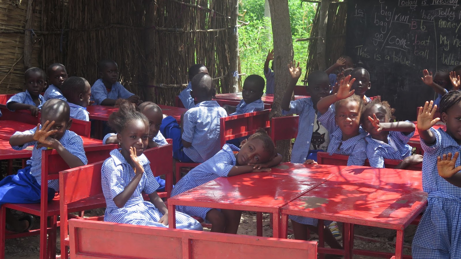 | Los niños más pequeños nos saludan al llegar. |