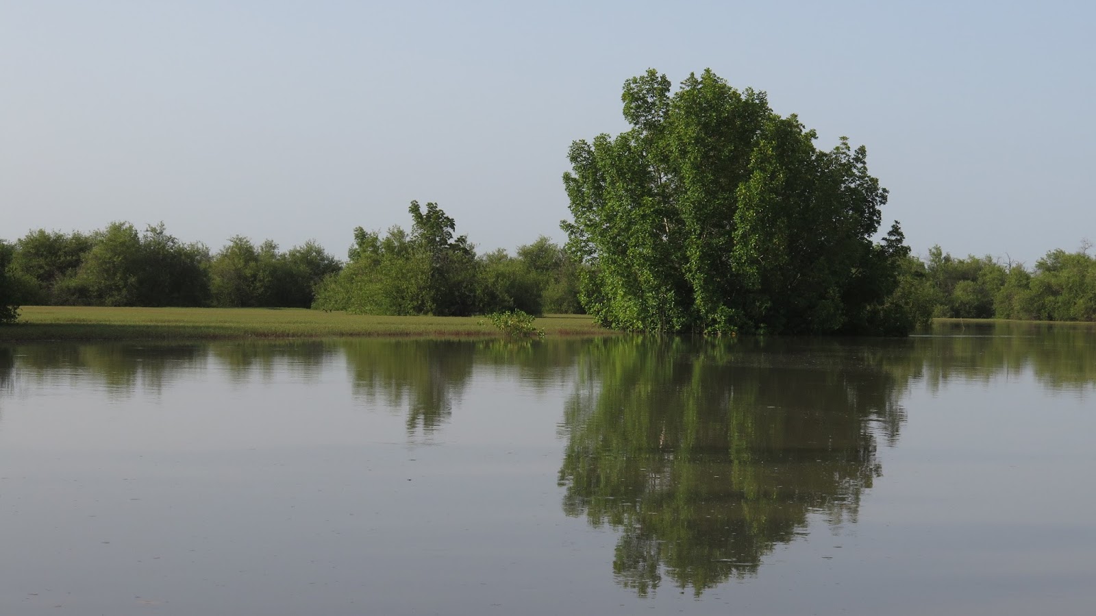 | Aguas tranquilas que reflejan la vegetación de la zona. |