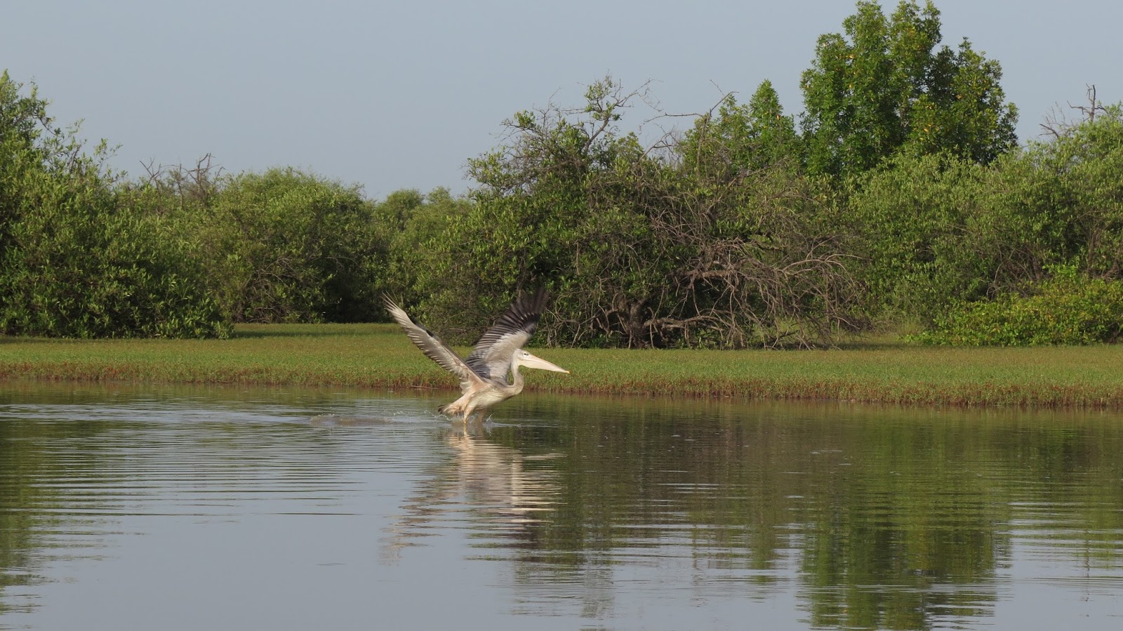 | Enorme pelícano alzando el vuelo. Nos pasó a unos 10-15 metros, realmente espectacular. |