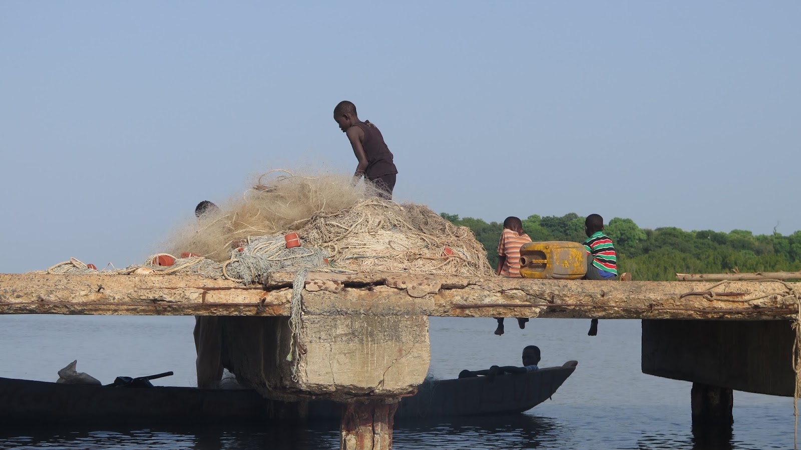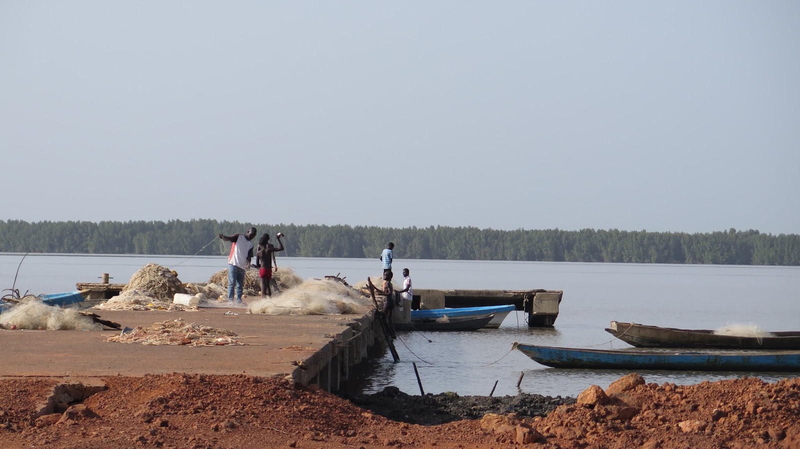 | Pescadores en el río Gambia. |