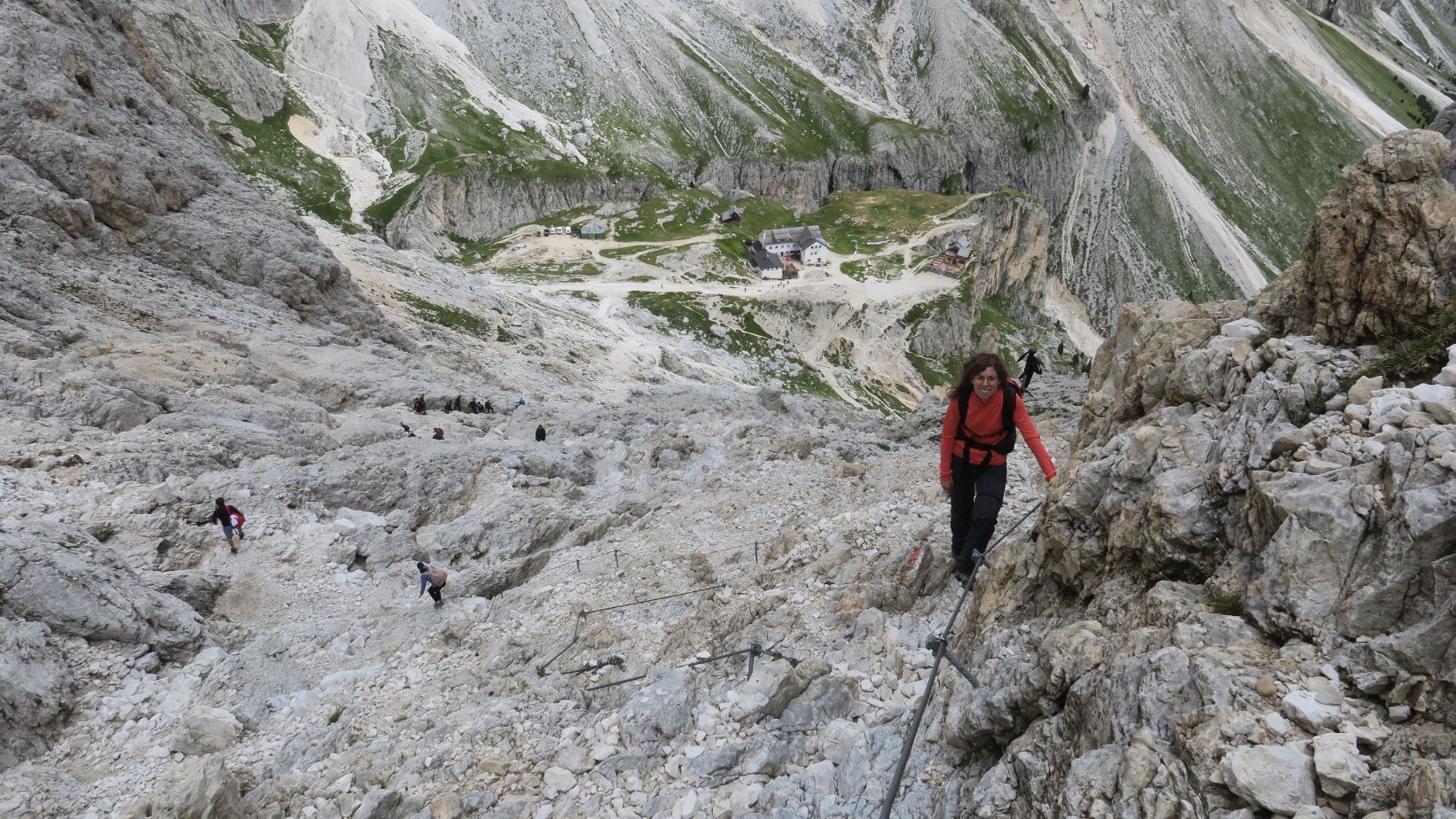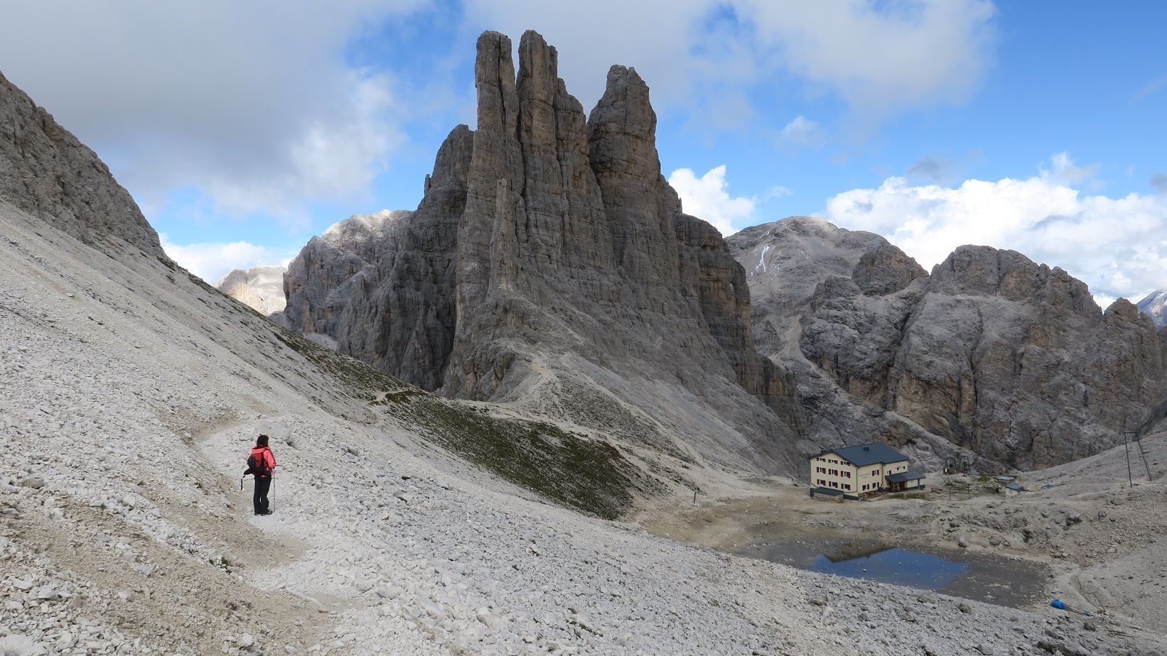 – Ruta al Rifugio Re Alberto I: esta es un poquito más complicada, algún tramo equipado con cadenas (si estáis habituados a la montaña no tendréis problema); permite dormir en el refugio bajo las Torri di Vajolet, que son impresionantes.
