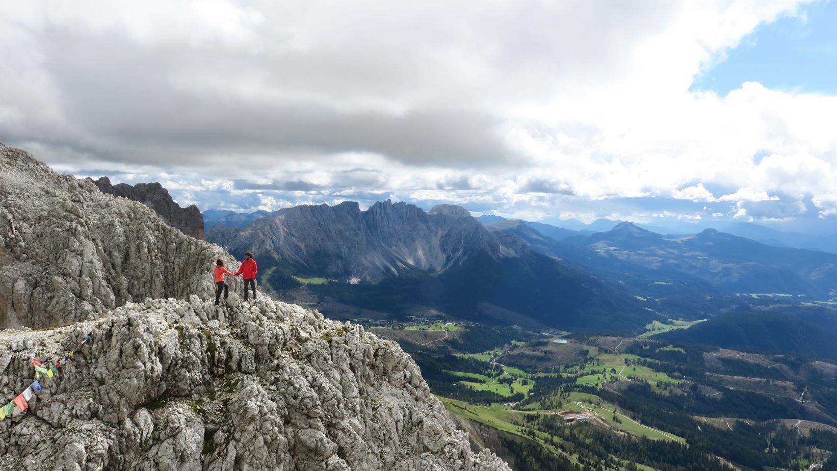 – Verano (finales junio – septiembre): en verano las temperaturas en los valles son suaves (en torno a 25ºC de máxima), descendiendo considerablemente por las noches. Aunque es la época ideal para gran parte de las actividades de montaña (senderismo, vías ferratas, escalada…), también hay que conocer que los meses de julio a septiembre también son lluviosos, con ocasionales tormentas, sobre todo por las tardes. Por ello resulta fundamental consultar los partes meteorológicos y saber que el tiempo en montaña puede cambiar en muy pocas horas. En estos meses la actividad en los Dolomitas es abrumadora, con hoteles llenos, precios algo más elevados y algunas atracciones turísticas (Tre Cime, Lago di Sorapis, Lago di Braies…) masificadas. Sin embargo, es cuando los teleféricos funcionan a pleno rendimiento y cuando mejor se puede disfrutar de la montaña, ya sea caminando, escalando o en bicicleta.