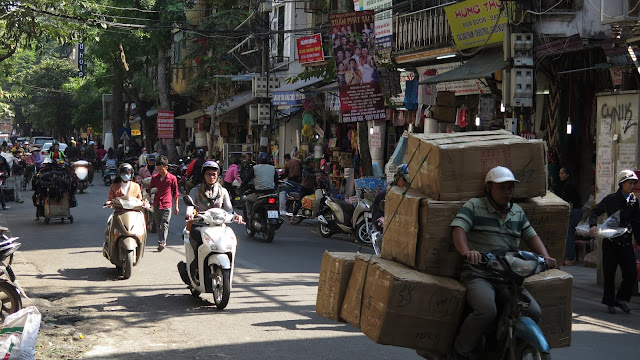 Motos bien cargadas, en las siempre ajetreadas calles de Hanoi.
