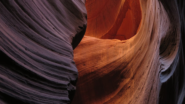 Cuando hablamos de Antelope Canyon nos referimos a un cañón de ranura situado muy cerca de la localidad de Page, en el norte de Arizona. Se divide en dos partes (Upper y Lower), ambas esculpidas a lo largo de miles de años por la erosión del agua. Las repentinas crecidas provocadas por las infrecuentes pero potentes tormentas en la zona han modelado la roca de arenisca formando esas curvas imposibles, llenas de fuerza, movimiento y color.