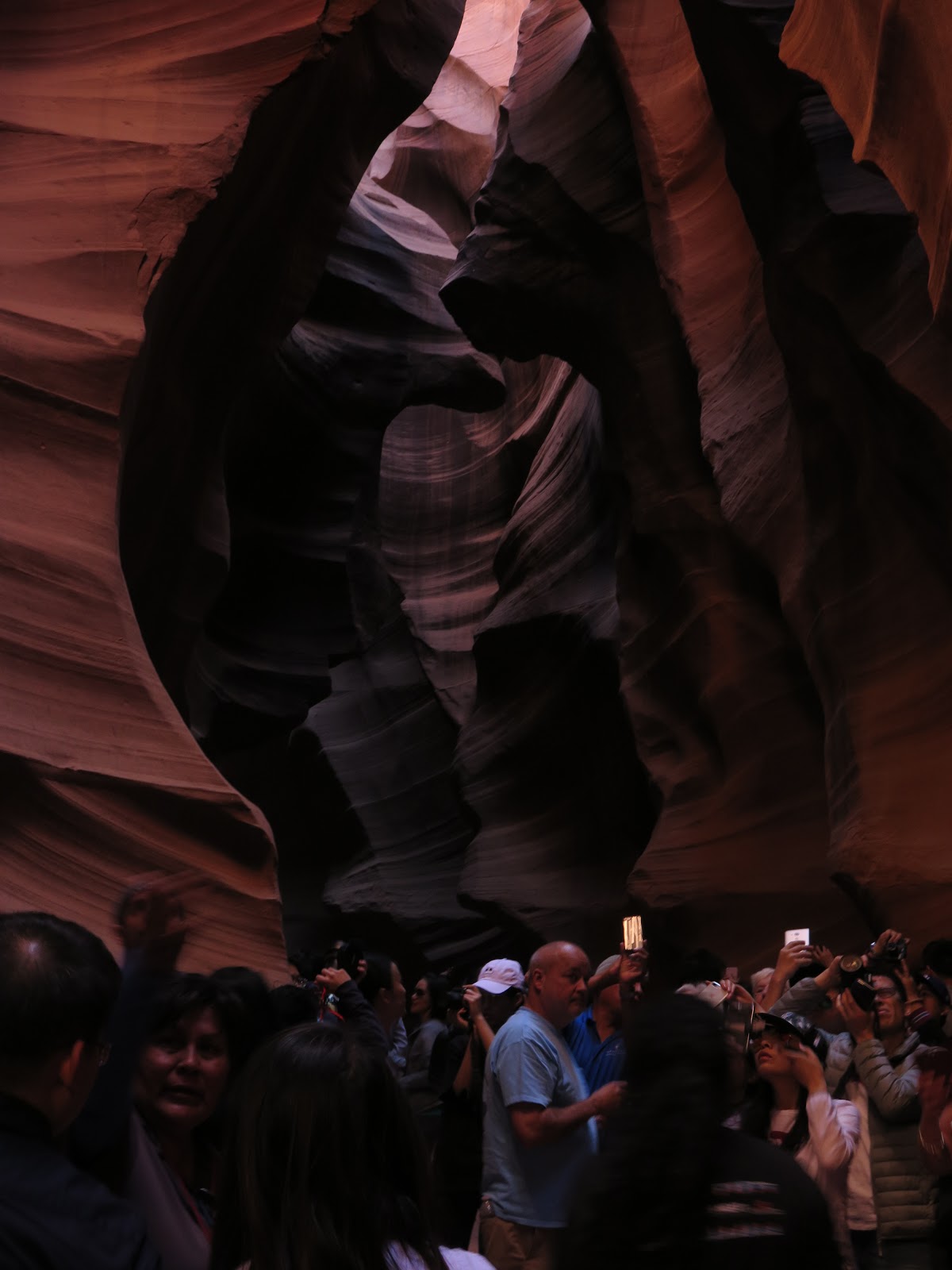 El espectáculo es muy similar al del Lower Antelope Canyon, aunque en este caso está mucho más masificado, repleto de grupos de gente tomando miles de fotografías cada minuto.