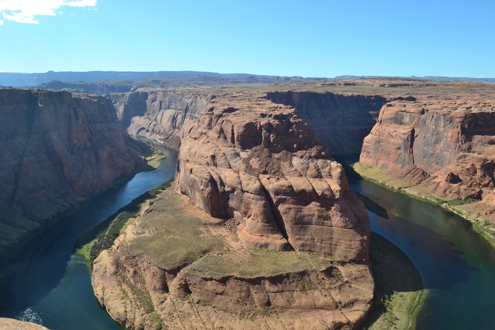 Regresamos a la carretera en dirección a la localidad de Page, pero desviándonos enseguida hacia el sur para llegar al siguiente destino, Horseshoe Bend, a tan solo 6 kilómetros de la ciudad. Se trata de un bonito meandro del Río Colorado con forma de herradura (de ahí su nombre), de unos 300 metros de profundidad. En los últimos años se ha convertido en un destino muy turístico, no sólo por su proximidad a Antelope Canyon, sino también por su belleza intrínseca.