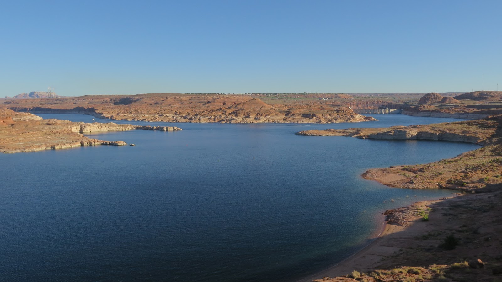 Ya que estamos en la zona nos acercamos a ver la gran presa del Glen Canyon, que crea el inmenso lago Powell. Se trata de un amplísimo parque nacional de más de 5000 km2, donde realizar senderismo o navegar por el lago, en el que destaca el Rainbow Bridge, un arco de piedra de más de 71 metros de altura. Realmente visitar el parque puede suponer varios días; nosotros, aprovechando que tenemos el Anual Pass, únicamente entramos para tomar varias fotografías del gigantesco lago en medio del desierto.