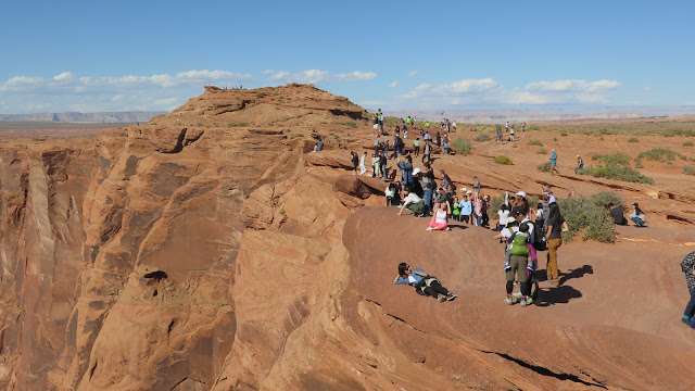 Una vez llegamos a los miradores contemplamos durante un buen rato la impresionante curva que realiza el Río Colorado en este punto. Debemos tener precaución, puesto que en ningún punto hay barandillas y los miradores son, realmente, rocas desde las que nos asomamos al vacío. En los últimos años se han registrado algunos accidentes en este lugar, así que tenemos que ir con muchísimo cuidado.