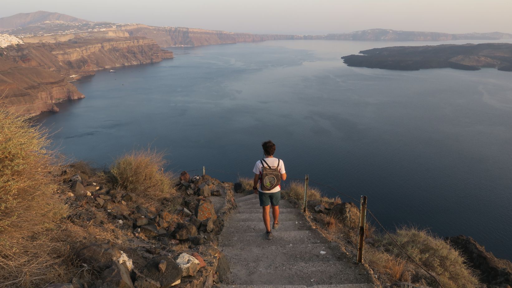 De excursión por la isla de Santorini, con vistas a la gigantesca caldera.