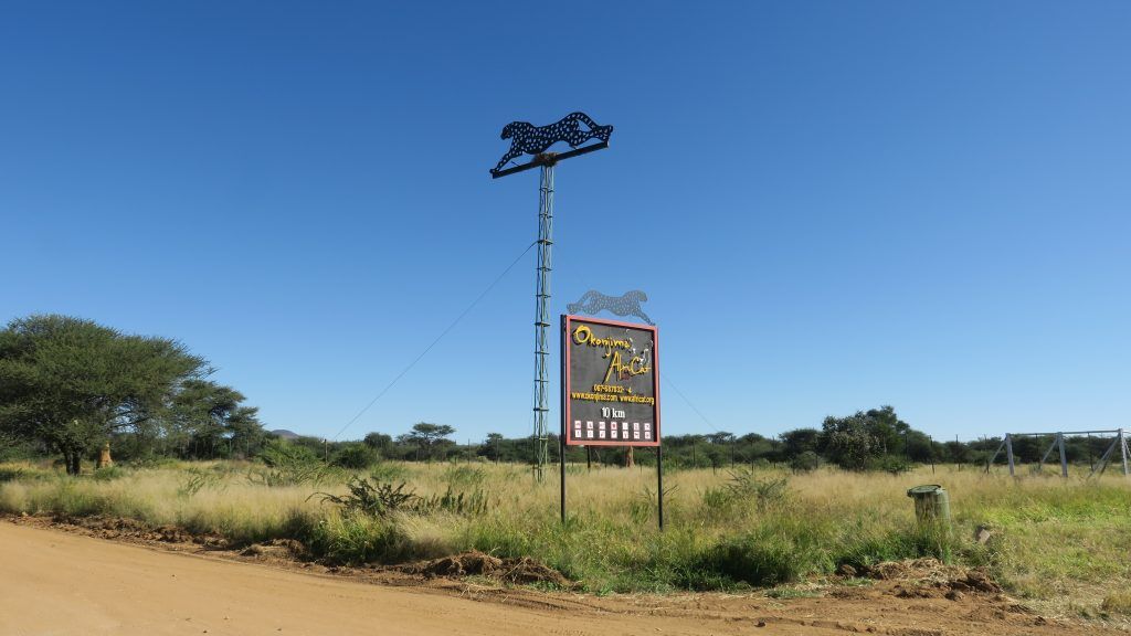 Desayunamos y tomamos la carretera B1 en dirección norte. Guiados por nuestra aplicación de GPS, encontramos fácilmente el desvío que se dirige a Okonjima (también señalizado por un cartel en la carretera).