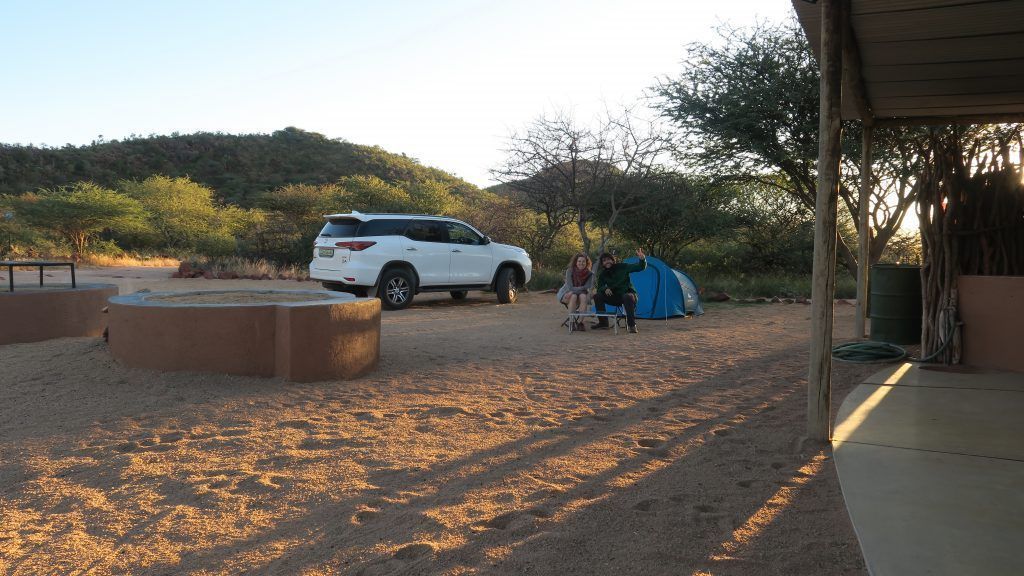 Omboroko Campsite: cuatro zonas de acampada privadas (para grupos o familias), alejadas unas de las otras. Con luz eléctrica, baño y duchas con agua caliente, así como un pequeño cobertizo donde poder guarecerse, cocinar y lavar. Cada una de ellas cuenta con un mirador desde el cual contemplar el atardecer; existe la posibilidad de acercarse a la piscina comunitaria situada entre todas ellas. Necesario llevar tienda de campaña, comida y utensilios para cocinar (hay una zona habilitada para hacer fuego). Están bastante alejadas de la zona de recepción (hay que ir en coche). Desde 440 NAD (26,5€) por persona y noche.