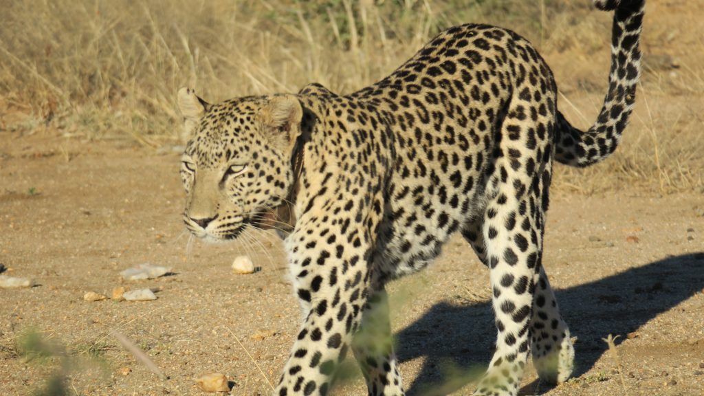 Sin apenas prestar atención al gran vehículo desde el cual lo contemplamos, el leopardo camina a escasos metros de nosotros, lenta pero decididamente. Las cámaras de fotos no dan abasto ante nuestra insistencia en tomar cientos de imágenes. Un momento especial y único, sin duda.