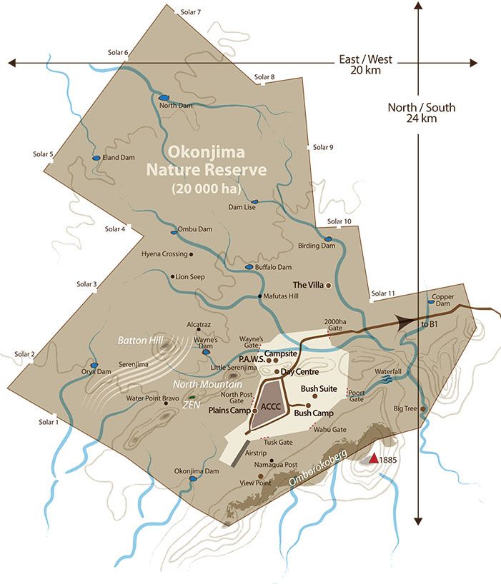 Mapa de la reserva de Okonjima.