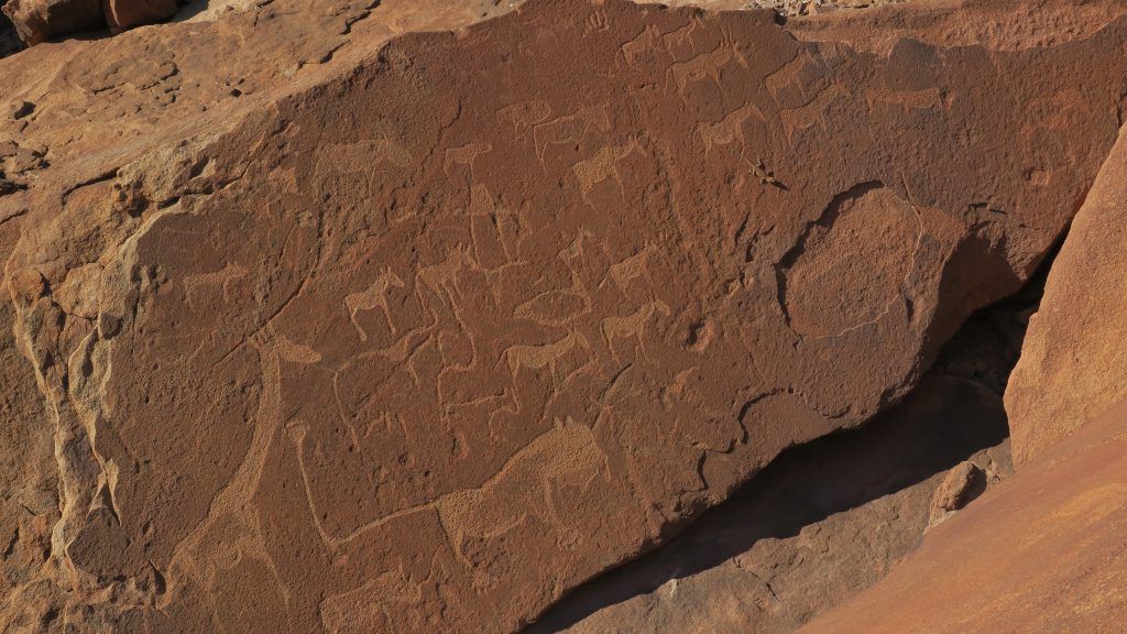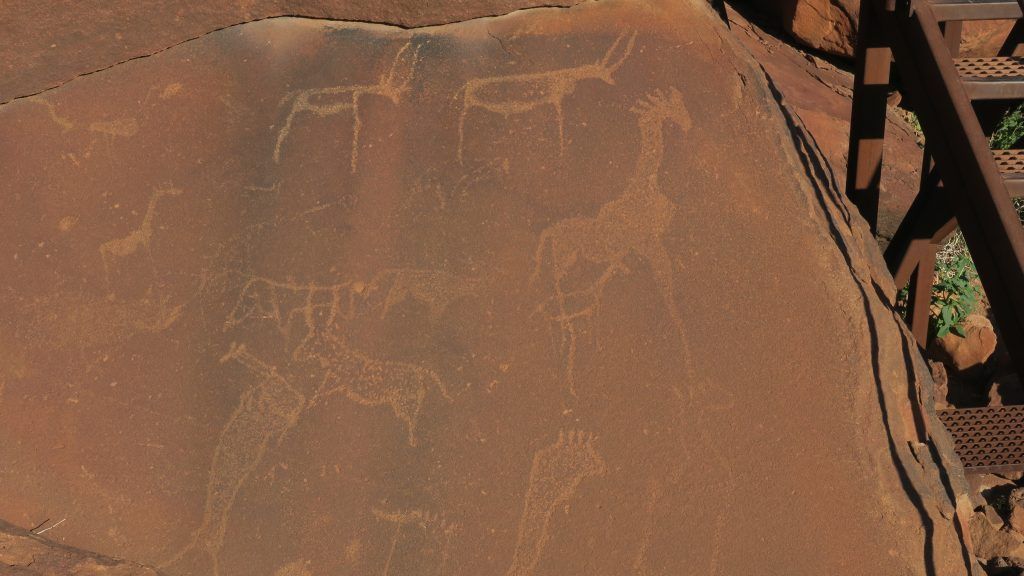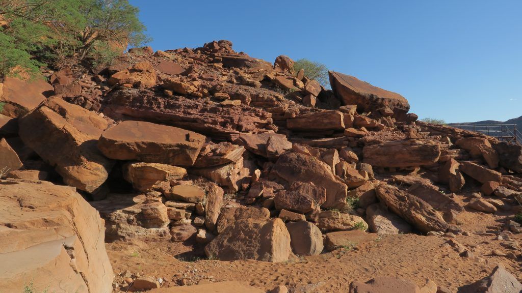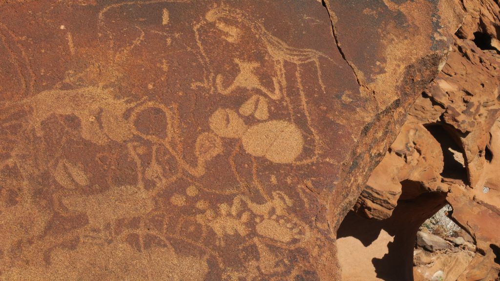 Detrás del casi impronunciable nombre de Twyfelfontein se encuentra uno de los mayores tesoros arqueológicos de Namibia, por no decir de toda África. Nos referimos a una enorme concentración de, al menos, 2500 petroglifos (estimaciones más recientes hablan de 5000), que datan de hace unos 2000 a 6000 años.
