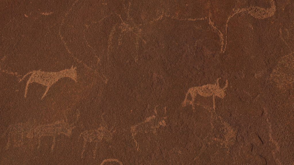 Estos grabados representan, mayormente, animales, como avestruces, rinocerontes, jirafas y elefantes; también hay huellas de animales y unas pocas figuras humanas. Se cree que todas estas representaciones podrían estar realizadas en el contexto de rituales chamánicos.