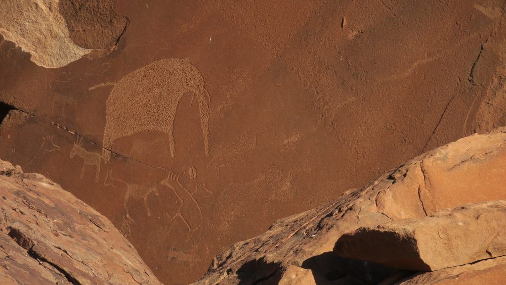 Algunas losas de roca poseen decenas de grabados, con jirafas de gran tamaño, rinocerontes u otros animales que sólo alcanzamos a reconocer tras la explicación del guía.